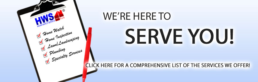 Contact HWS Plus®. Home Watch Service Plus® is comprised of professionals sharing their talents and skills to give you the best possible experience in taking care of your property investment. The owners of Home Watch Service Plus® are professional business people, facility maintenance engineers, sales people, marketing people, handymen, service specialists and an array of other skills that an individual mom and pop ownership company cannot duplicate. Our goal is to give you the best possible experience while taking the worry out of leaving your home unoccupied.